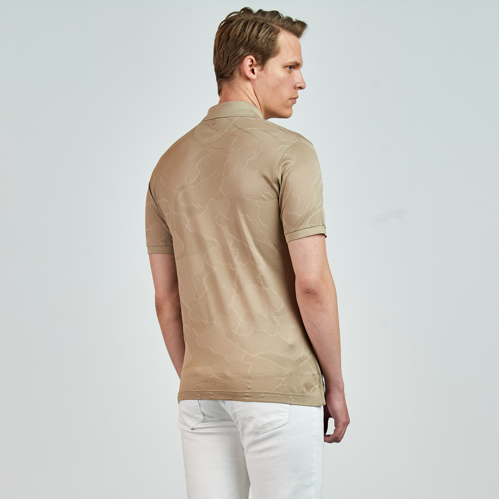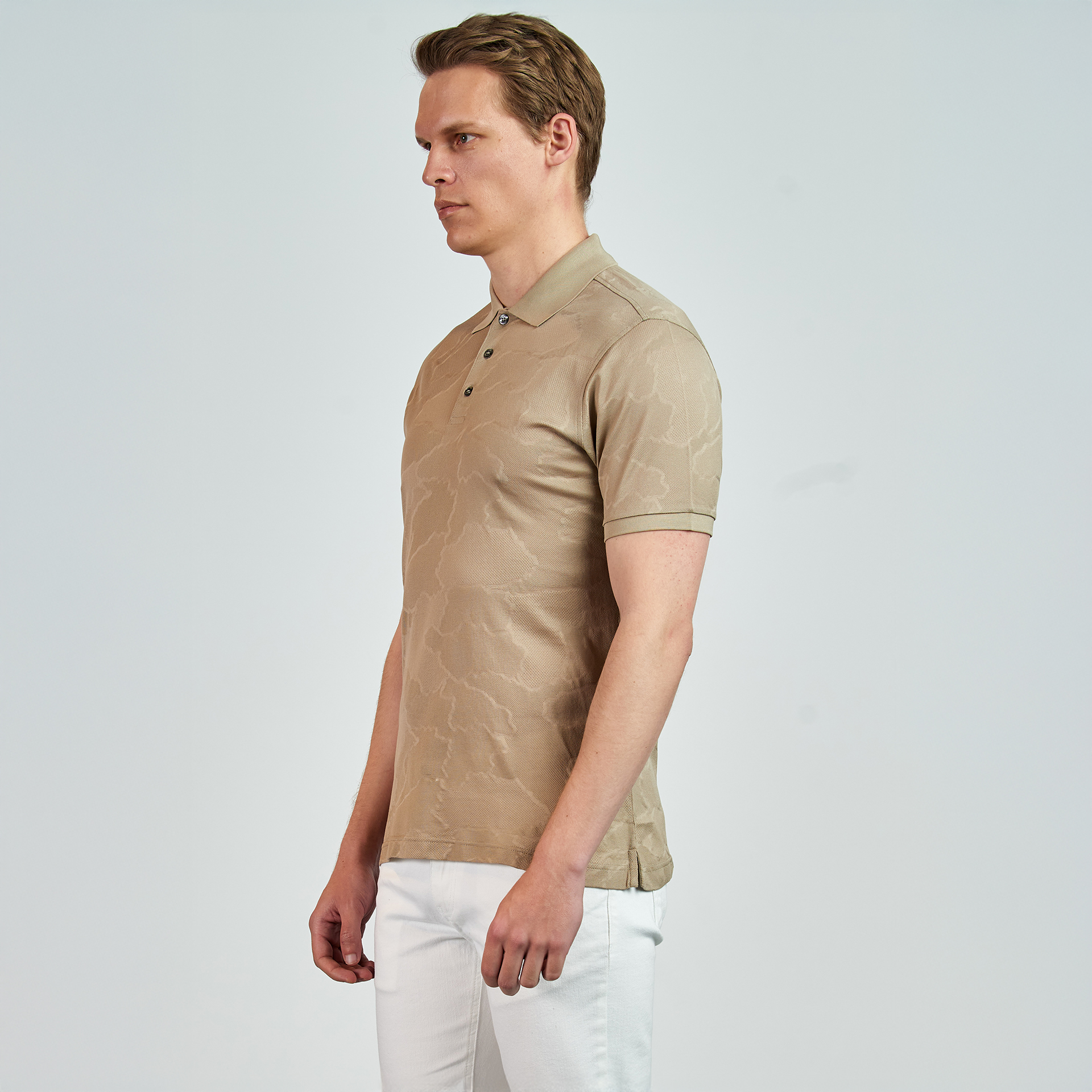 Polo yaka, düğme kapatmalı, Jakarlı T-shirt