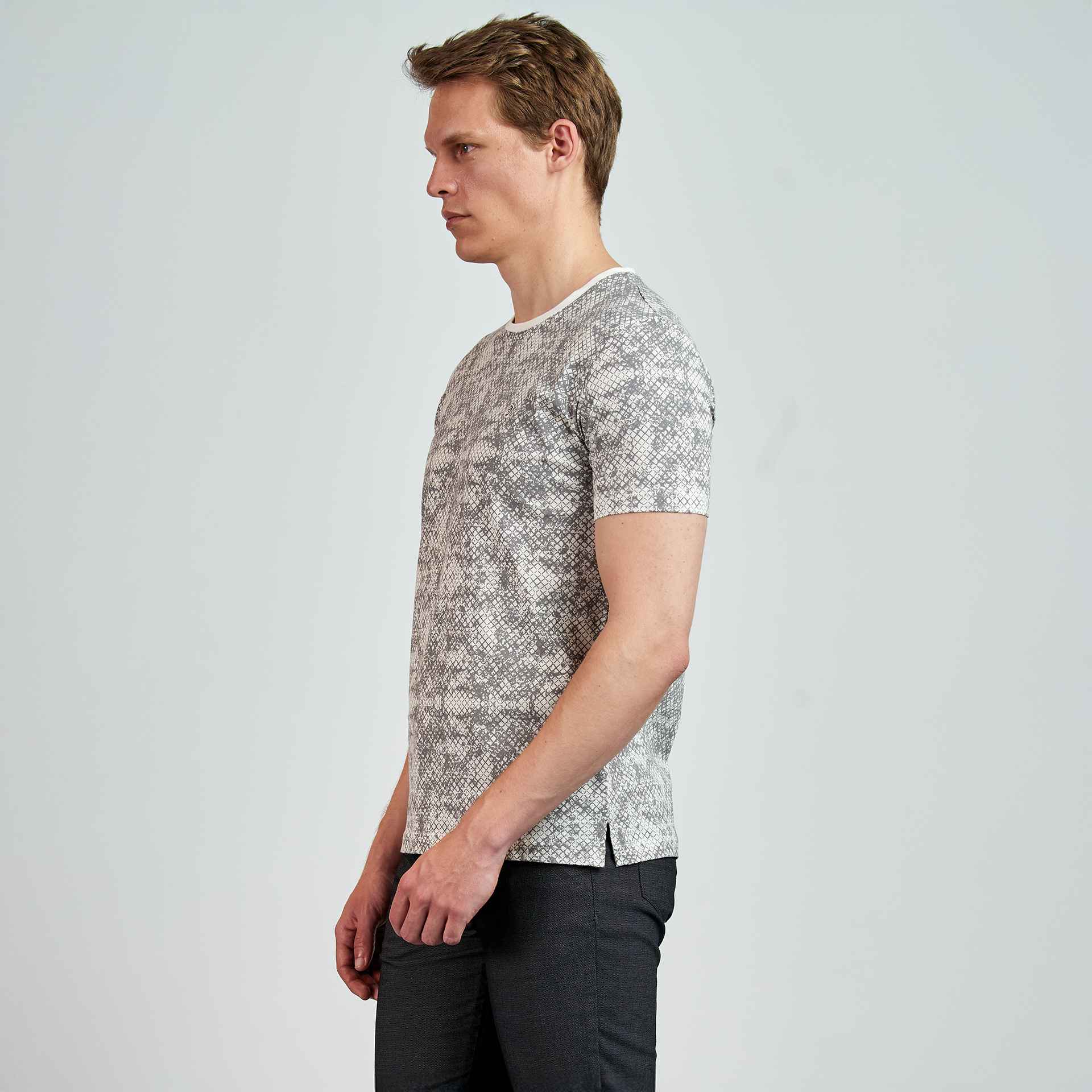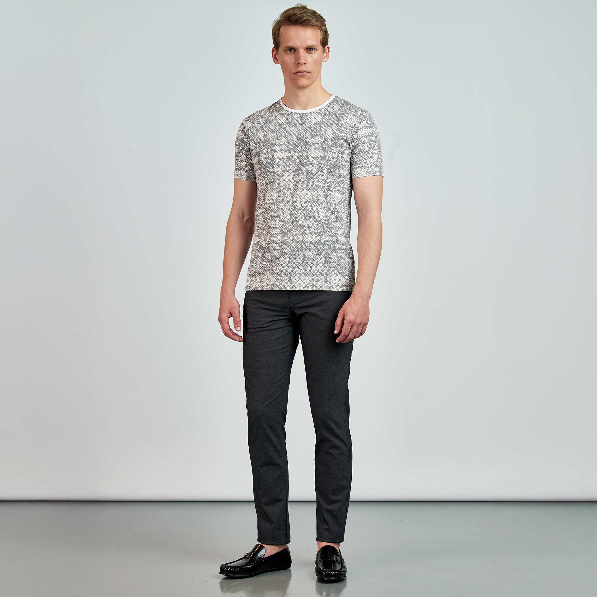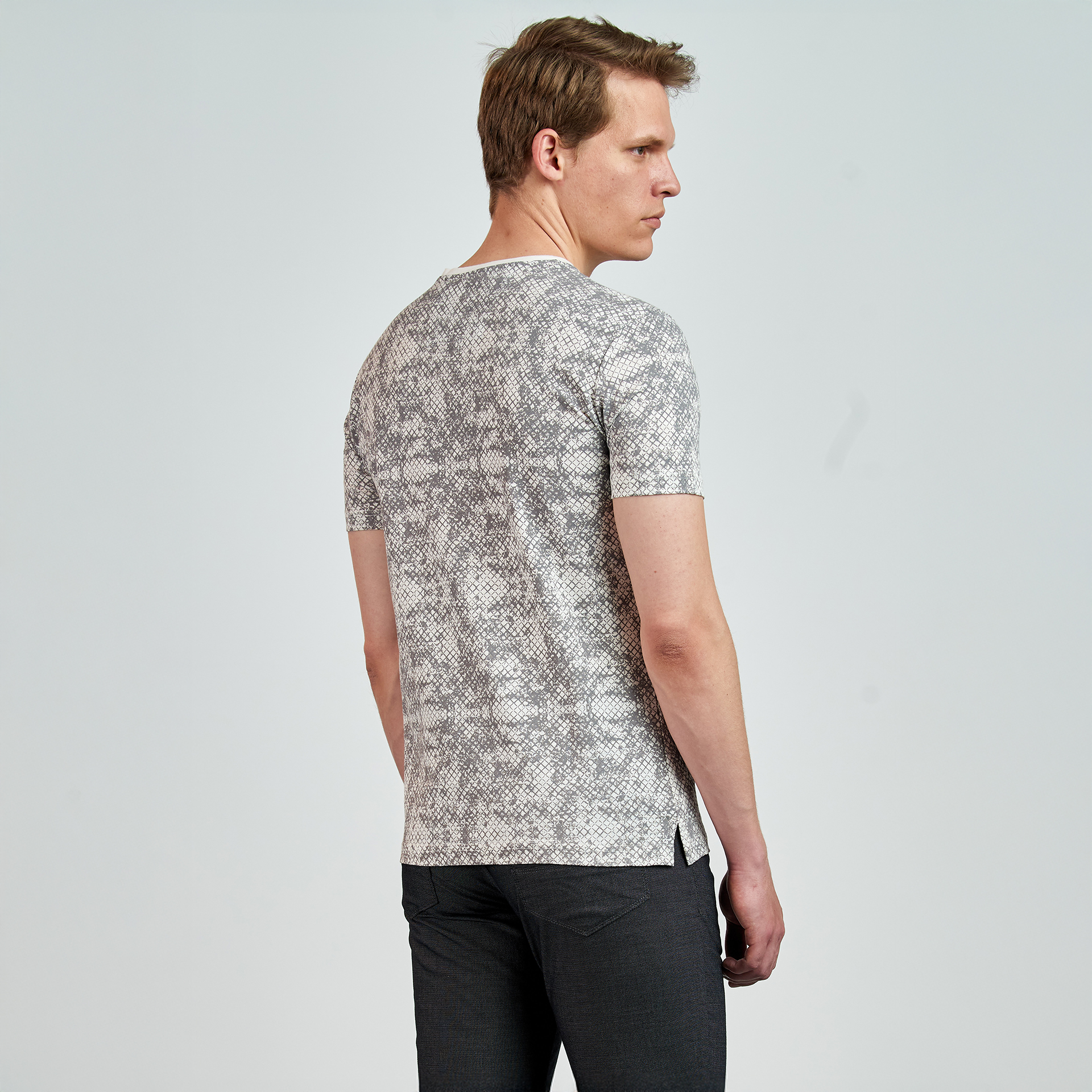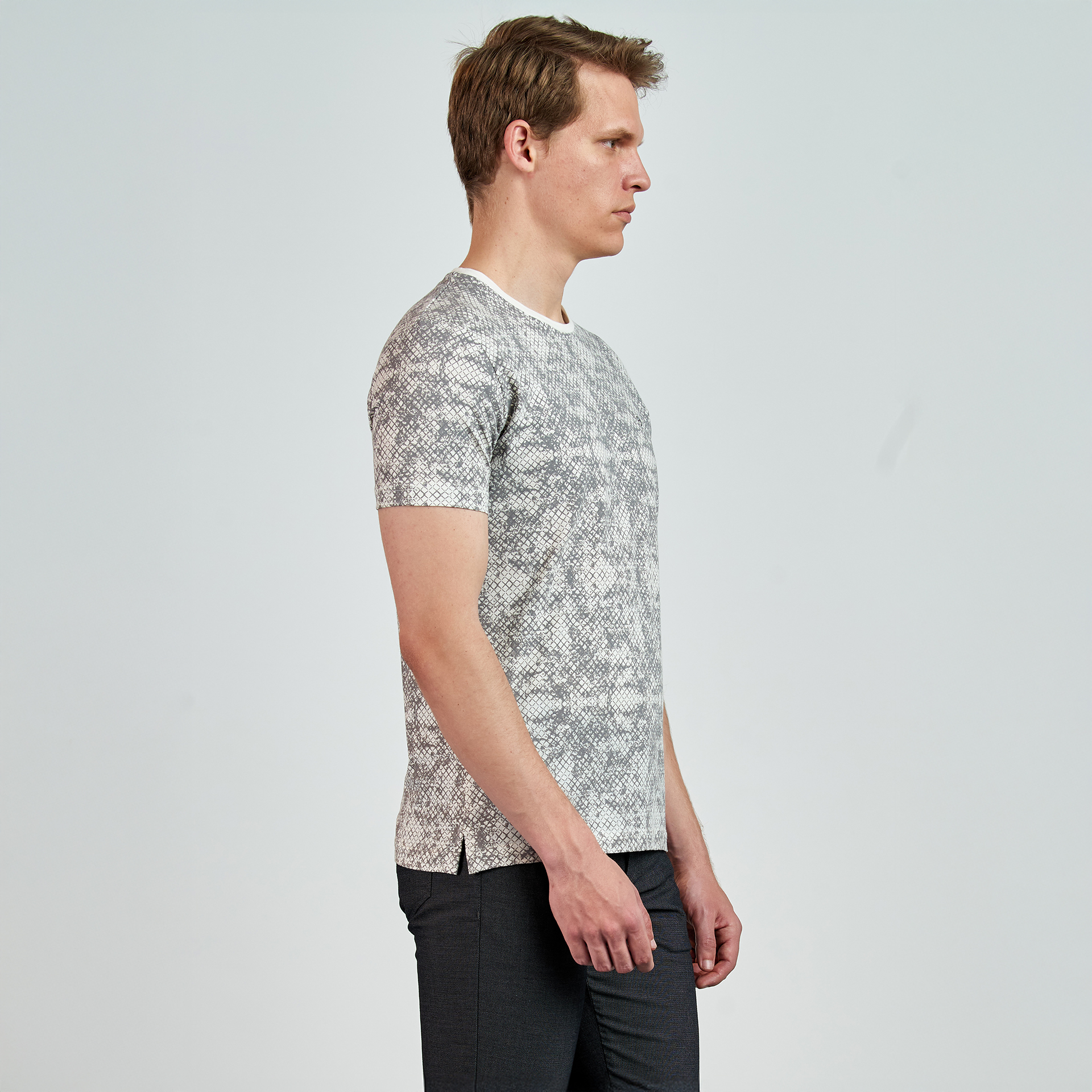 Bisiklet yaka, yılan derisi desenli T-Shirt.