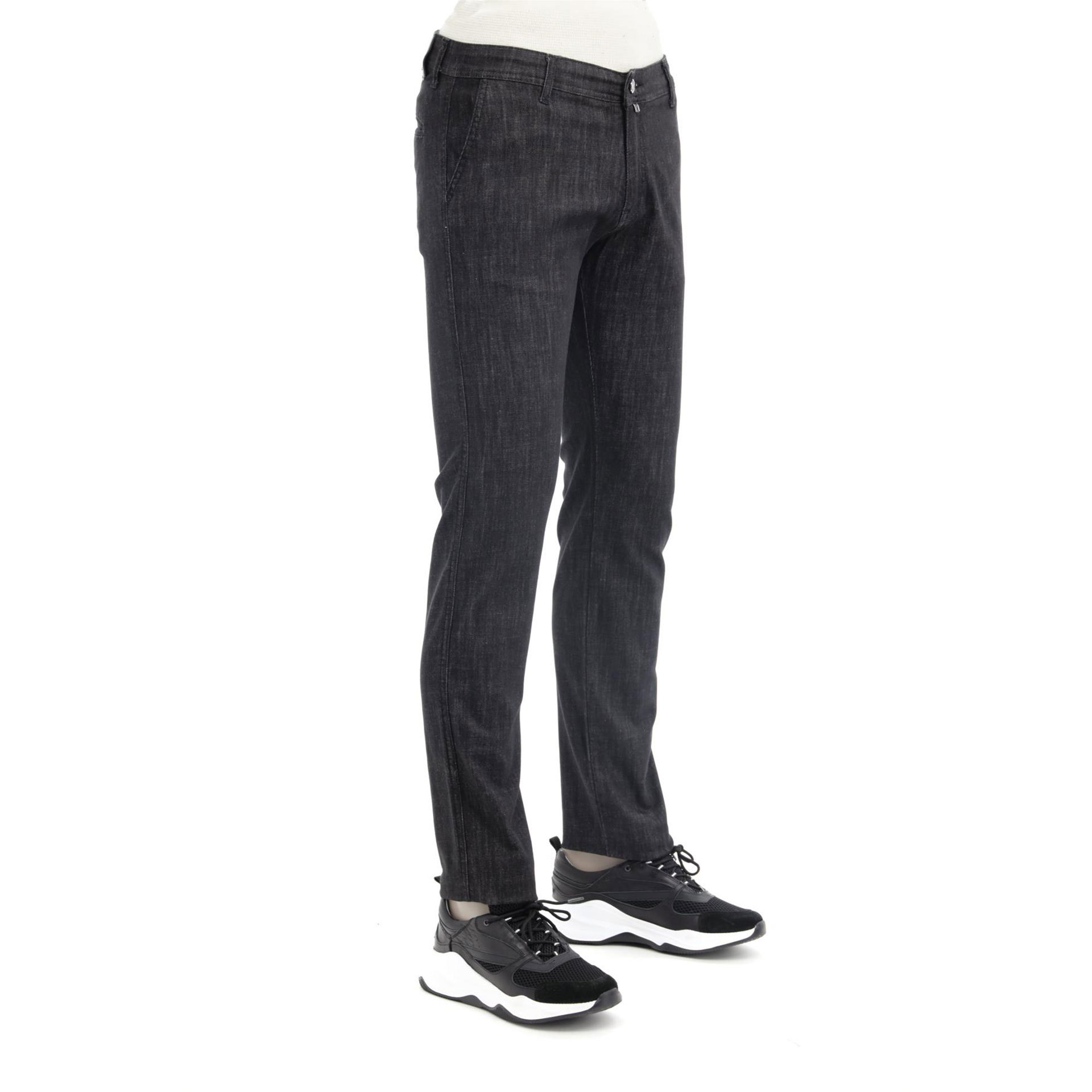 Normal bel, patletle gizlenen fermuar kapamalı, dar paça, dört adet cepli, kemer düğmeli, jakronlu.