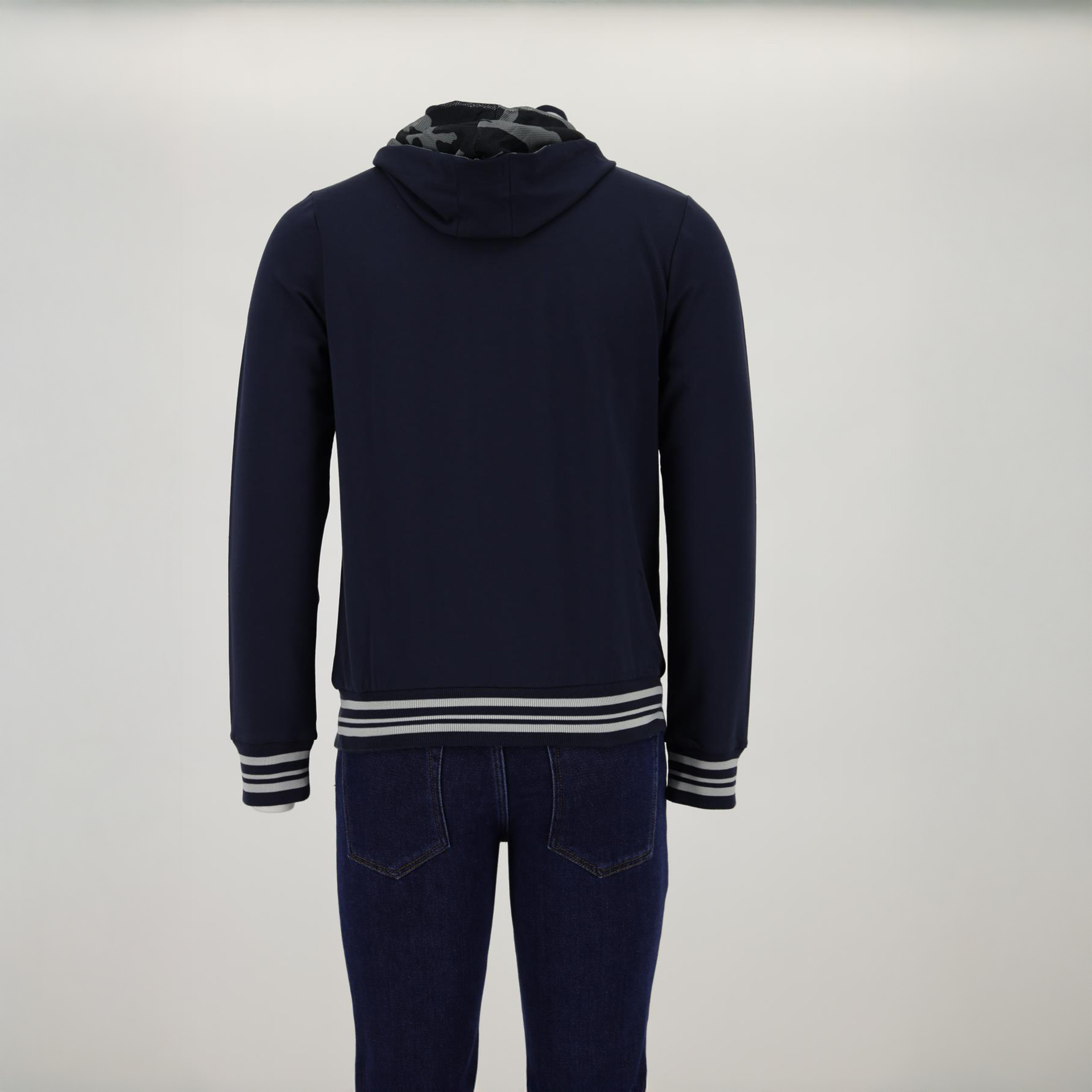 Dik yaka, kapüşonlu, fermuar kapatmalı, nakış detaylı, iki adet dış cepli.