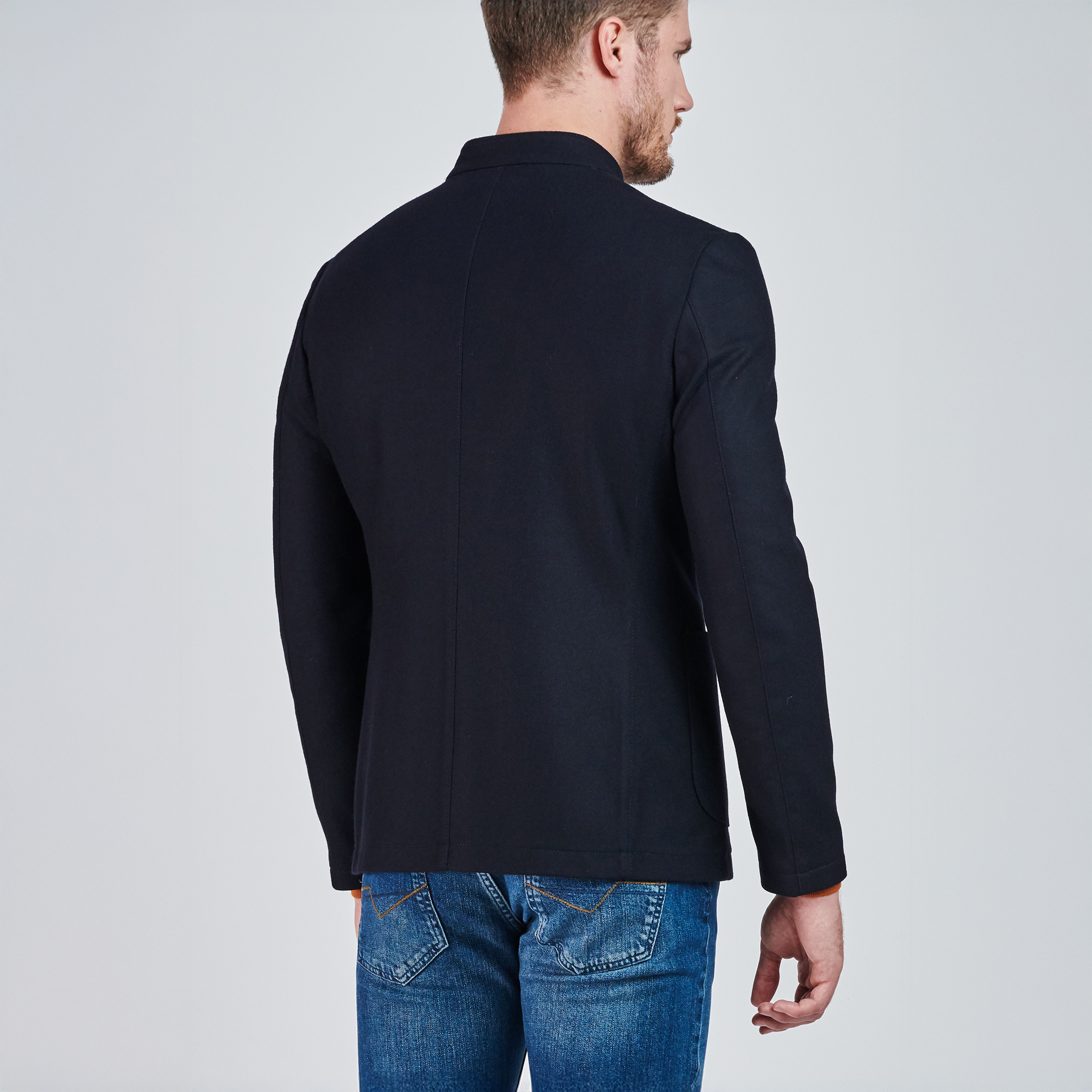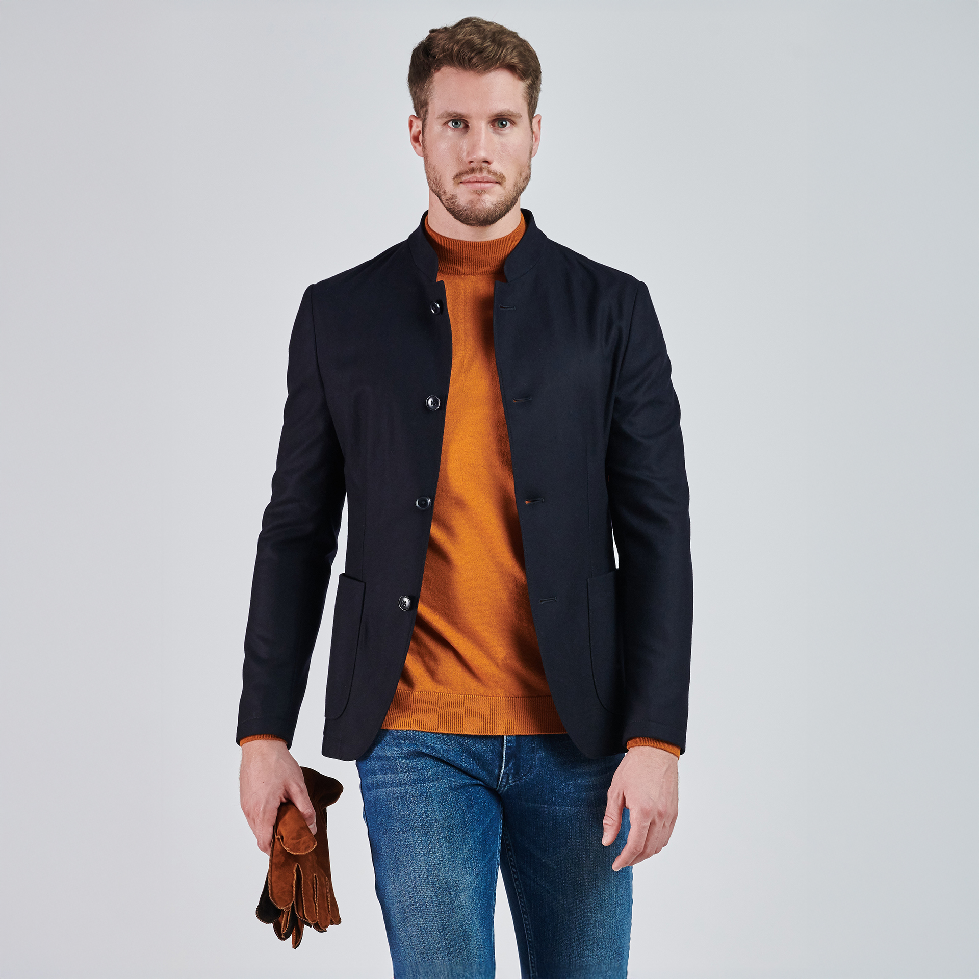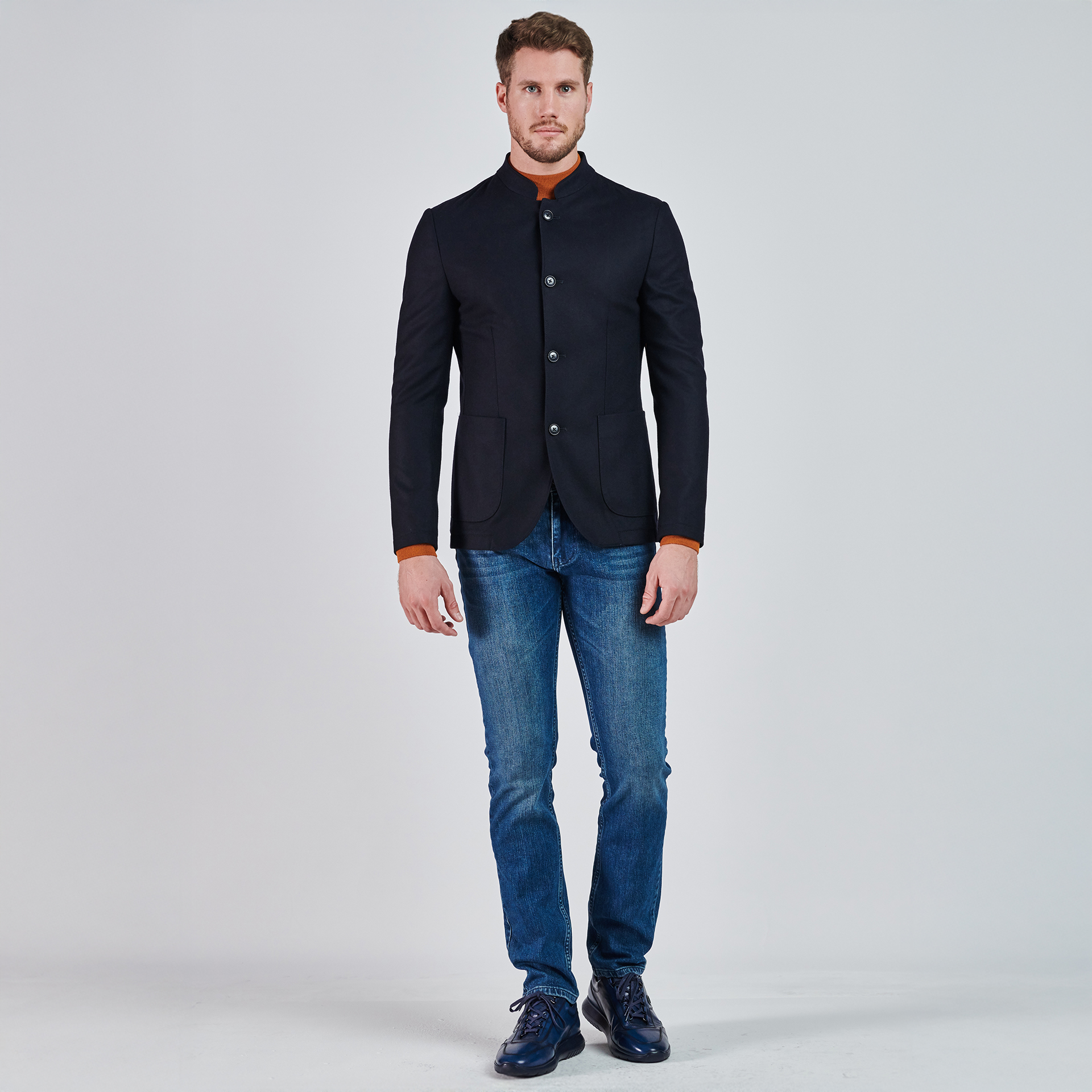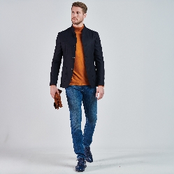 Hakim yaka, düğme kapatmalı, üç adet dış cepli.