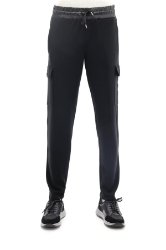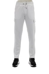 Belt with drawstring and elastic, embroidery and garni detail, three pockets, and two cargo pockets.