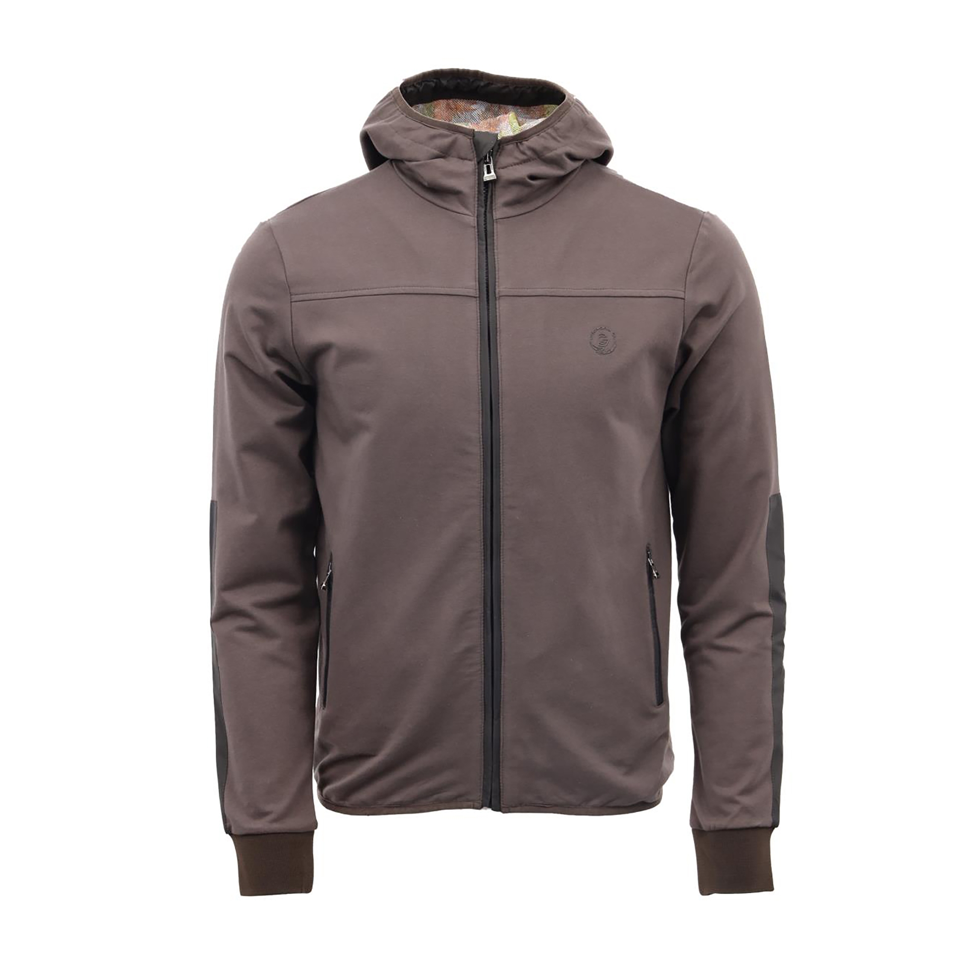Kapüşon yaka, fermuar kapatmalı, baskı ve garni detaylı, iki adet dış cepli.