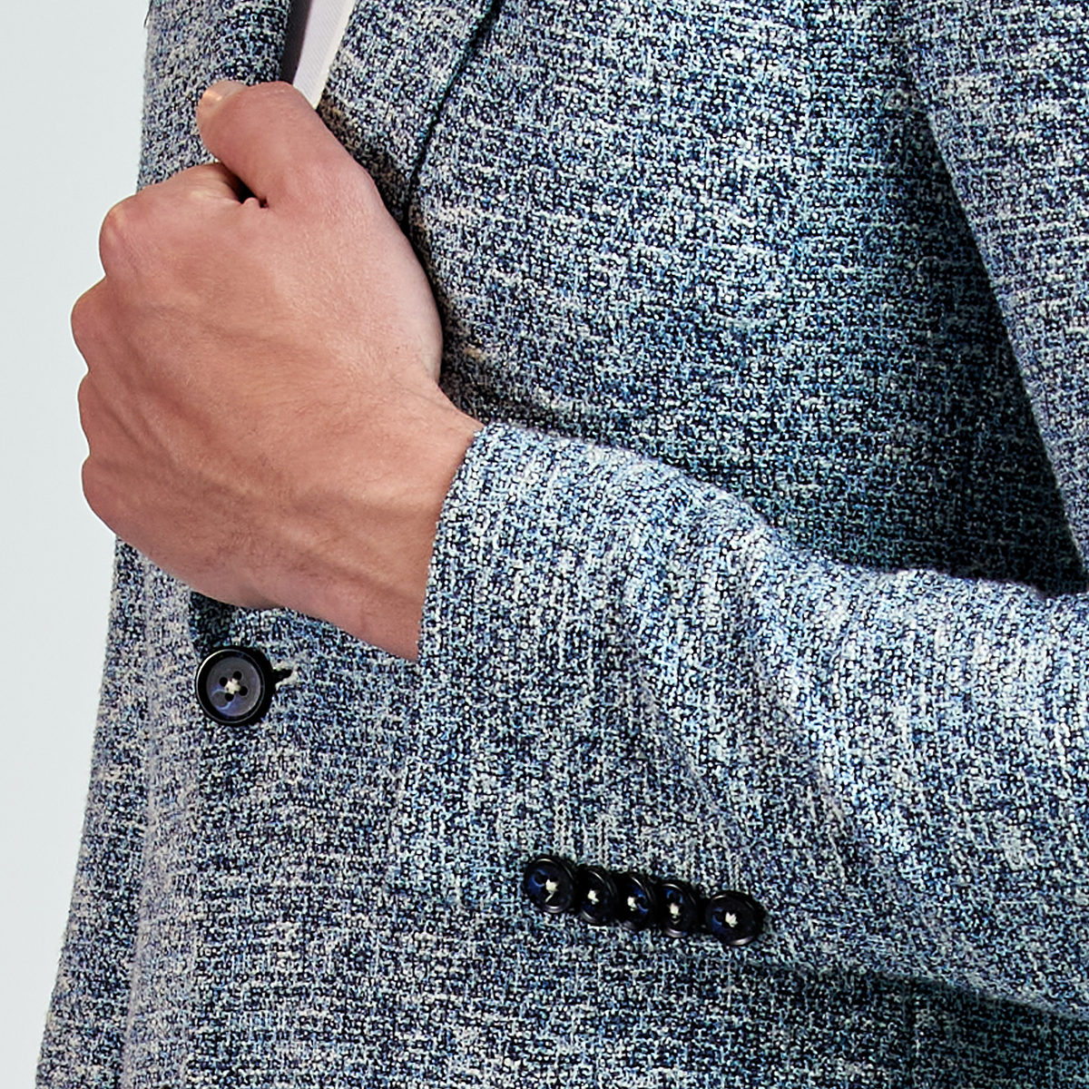 • Ürün Özellikleri : Dokulu Ceket. Mono yaka, punto dikişli, düğme kapatmalı, çift yırtmaçlı, 3 adet dış cepli, 3 adet iç cepli.