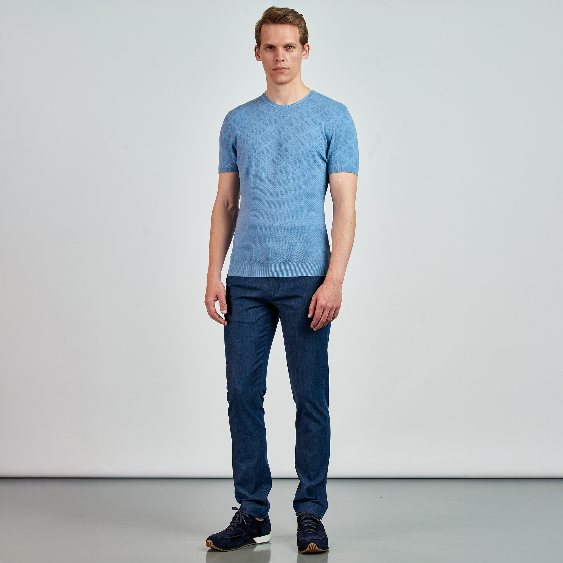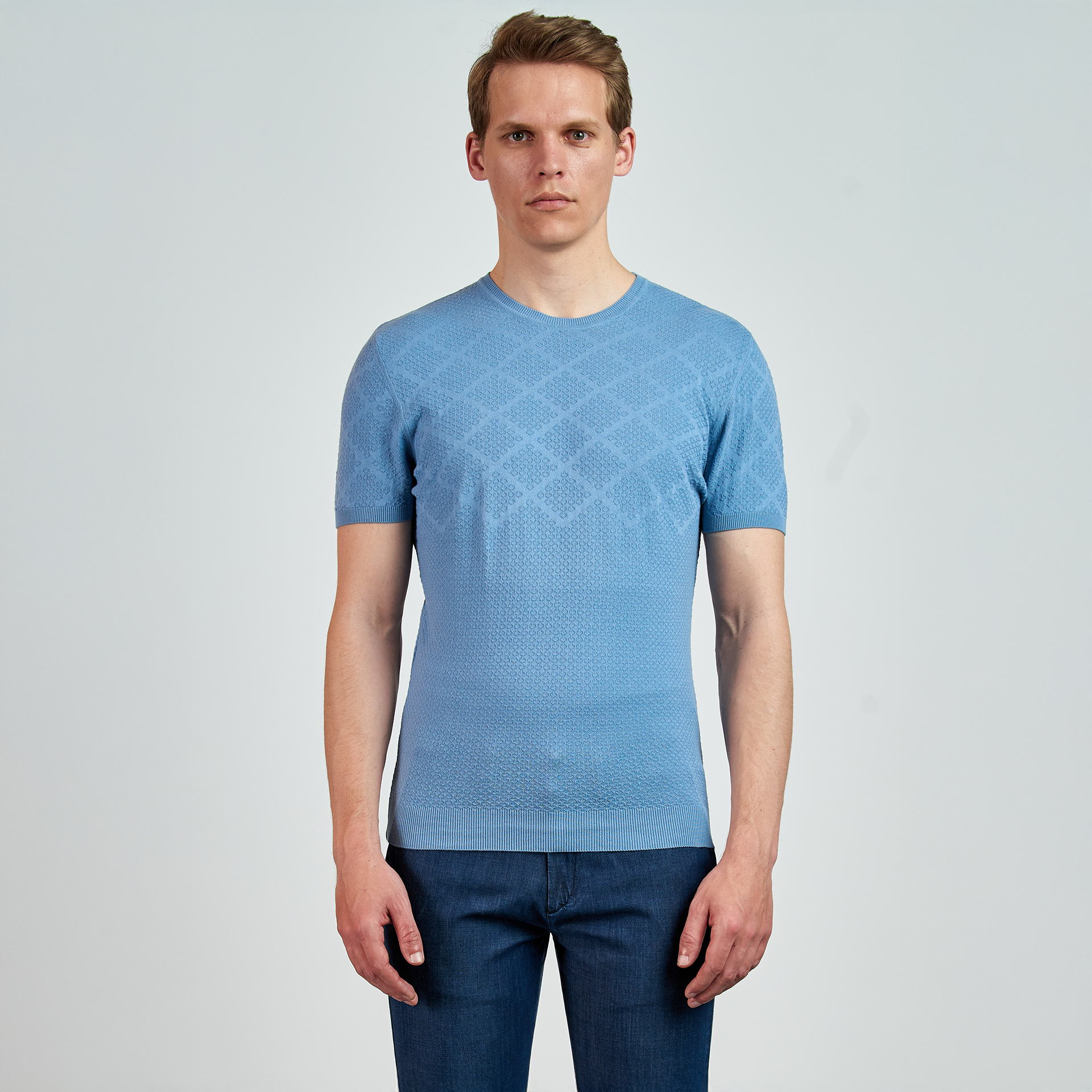 • Ürün Özellikleri : Bisiklet yaka, ense logo nakış detaylı, Baklava Desen Jakarlı Triko