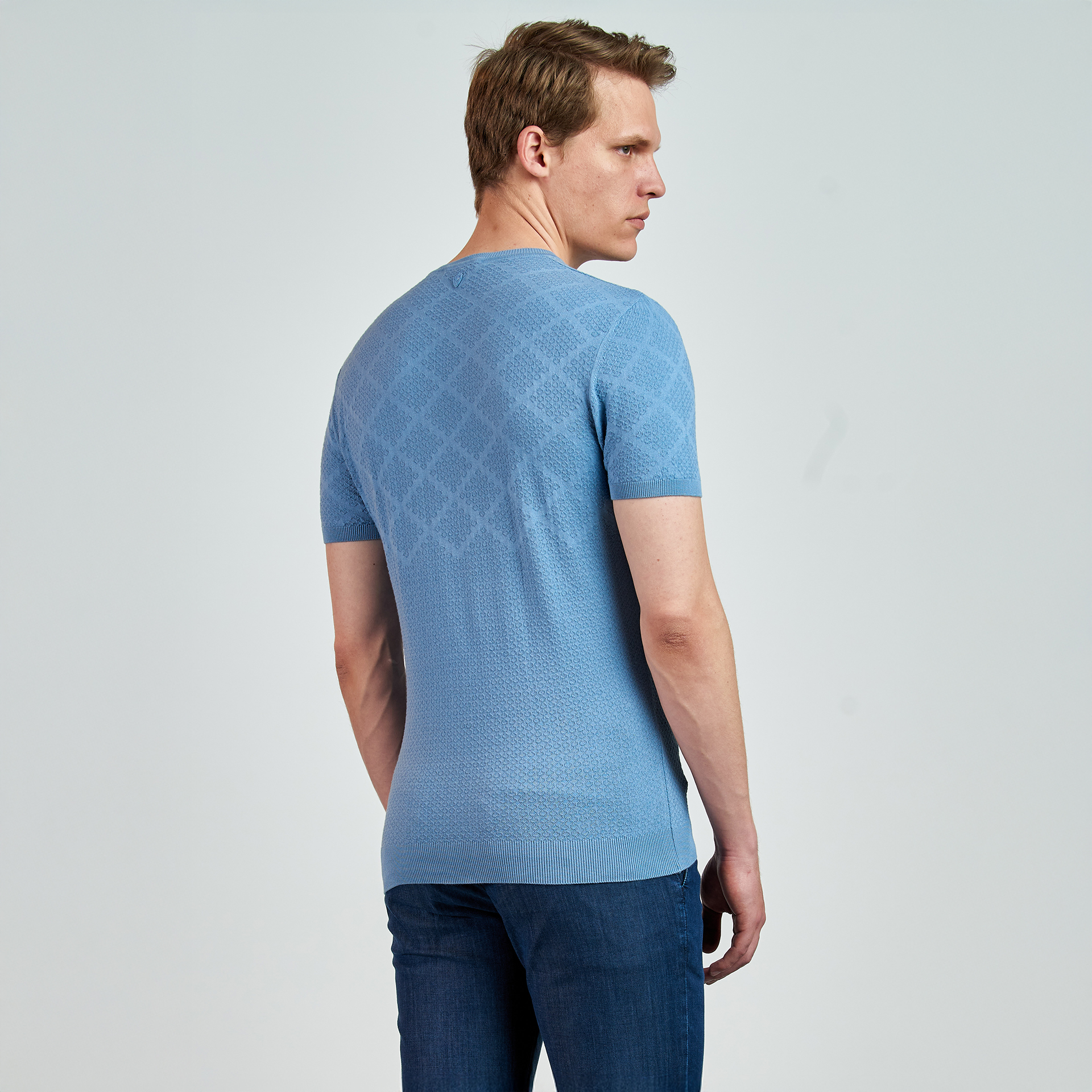 Bisiklet yaka, ense logo nakış detaylı, Baklava Desen Jakarlı Triko