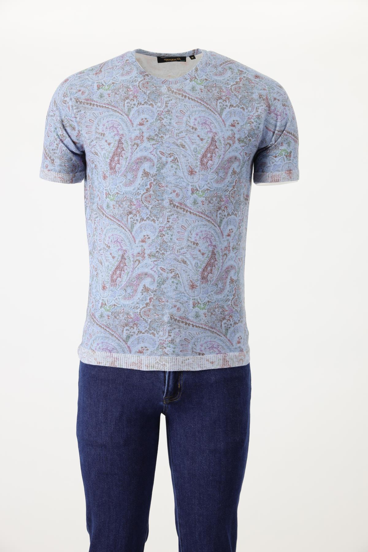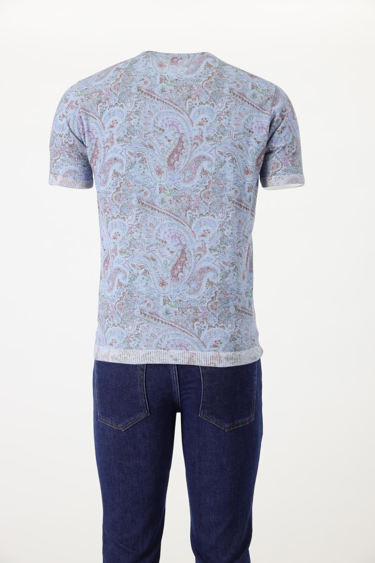 Bisiklet yaka, şal desenli, ense logo nakış detaylı, Triko