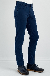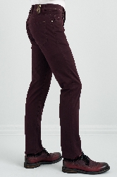 Normal bel, patletle gizlenen fermuar kapatmalı, boru paça, beş adet cepli, kemer düğmeli.