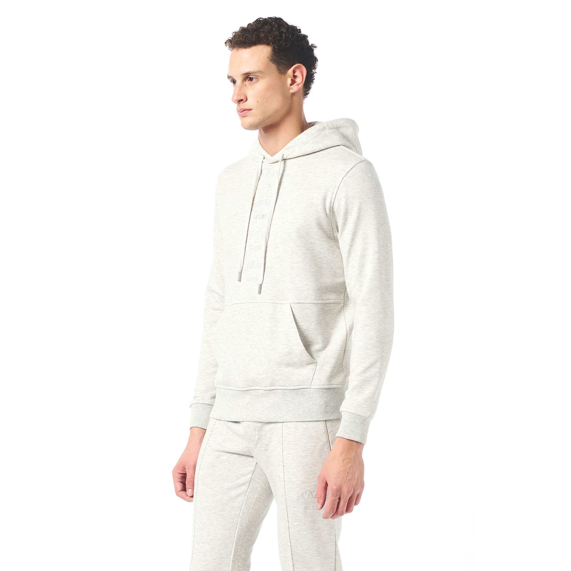 Hood collar, embroidery detail, kangaroo pockets.