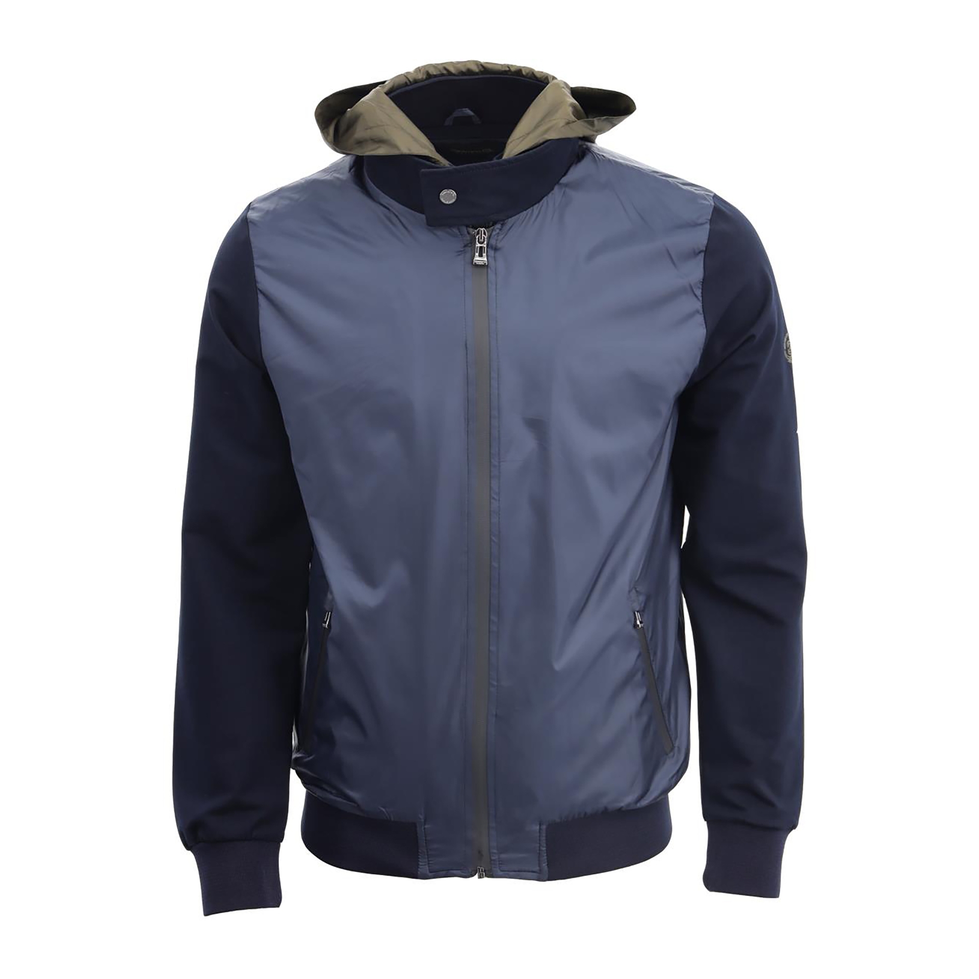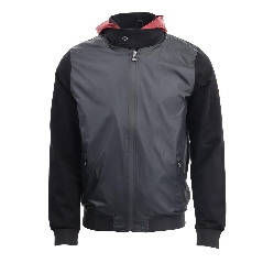 Dik yaka, kapüşonlu, fermuar kapatmalı, baskı ve garni detaylı, iki adet dış cepli.