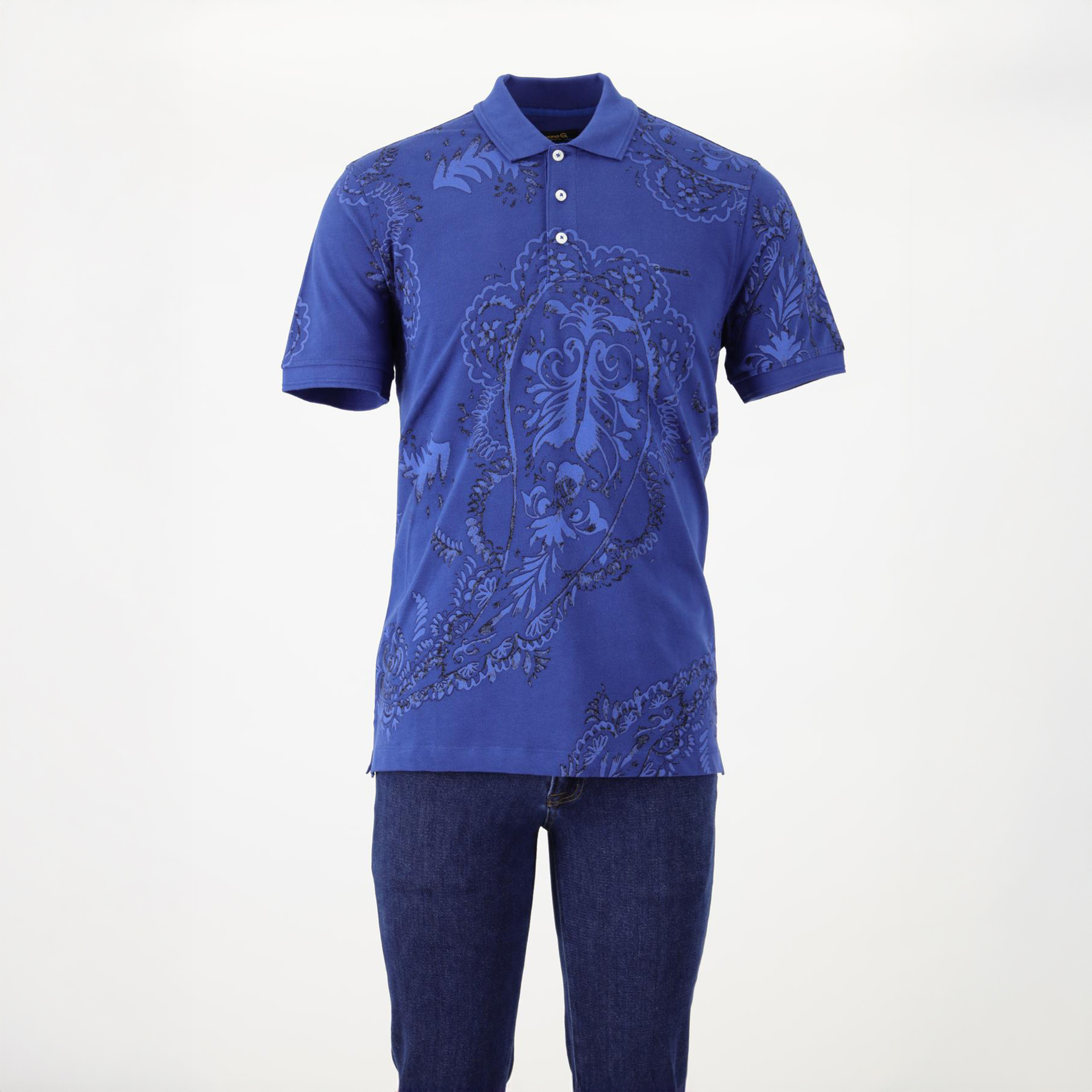 Product features: Polo yaka, düğme kapatmalı, şal desenli, T-shirt