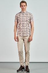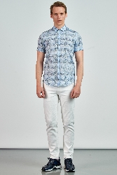 İtalyan yaka, düğme kapatmalı, desen baskılı, kısa kollu, Gömlek